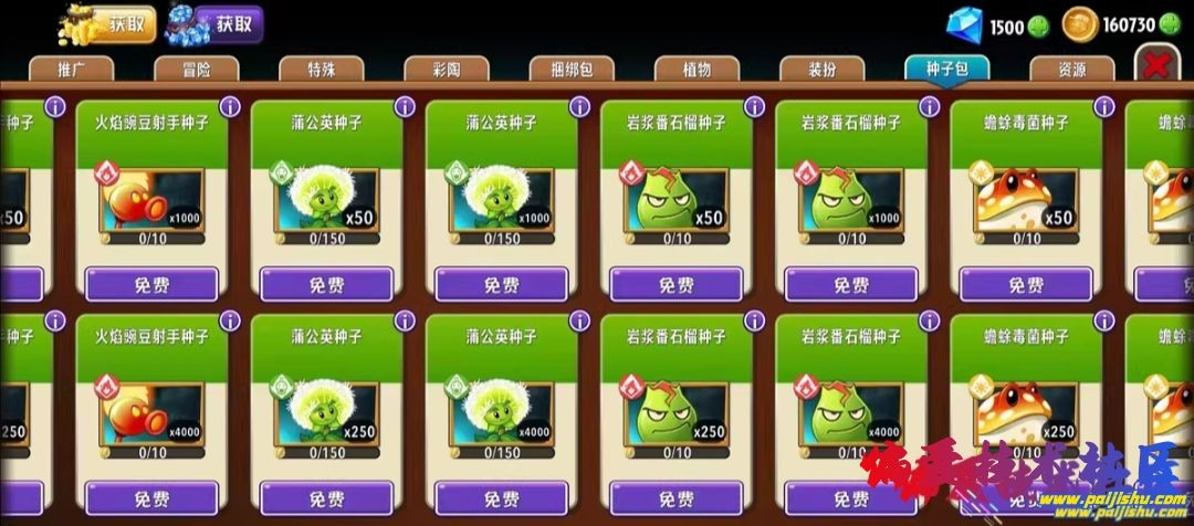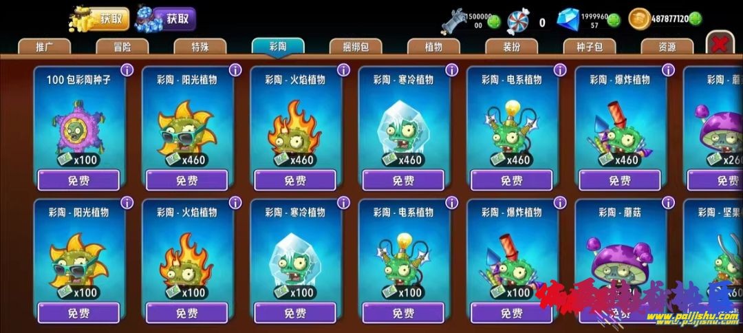 在植物大战僵尸2国际服的基础上,让金币、钻石、植物等可以免/费获取升级
